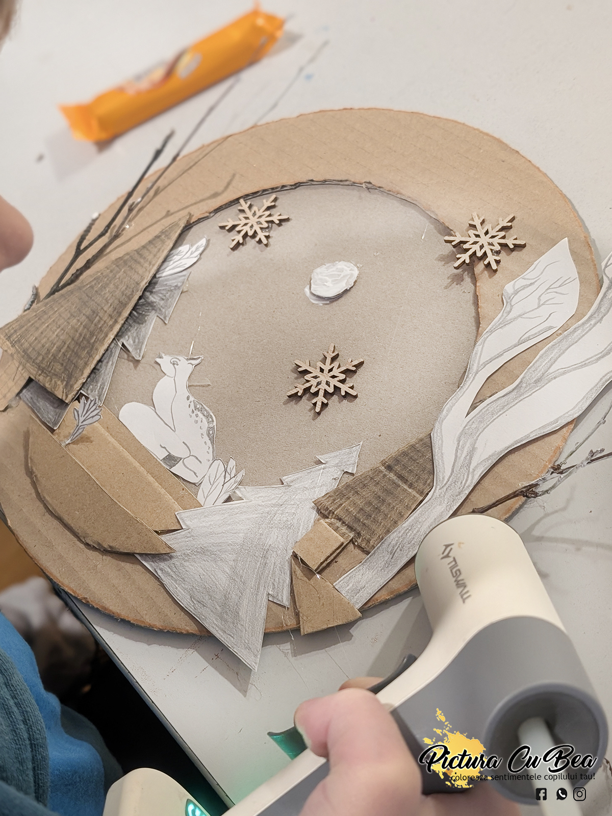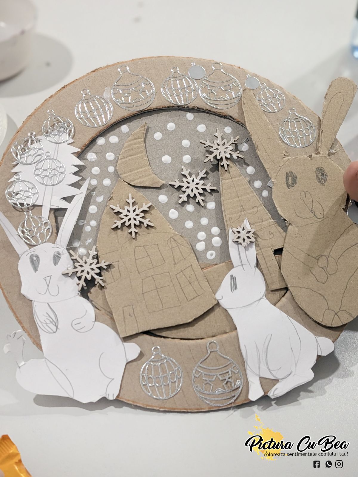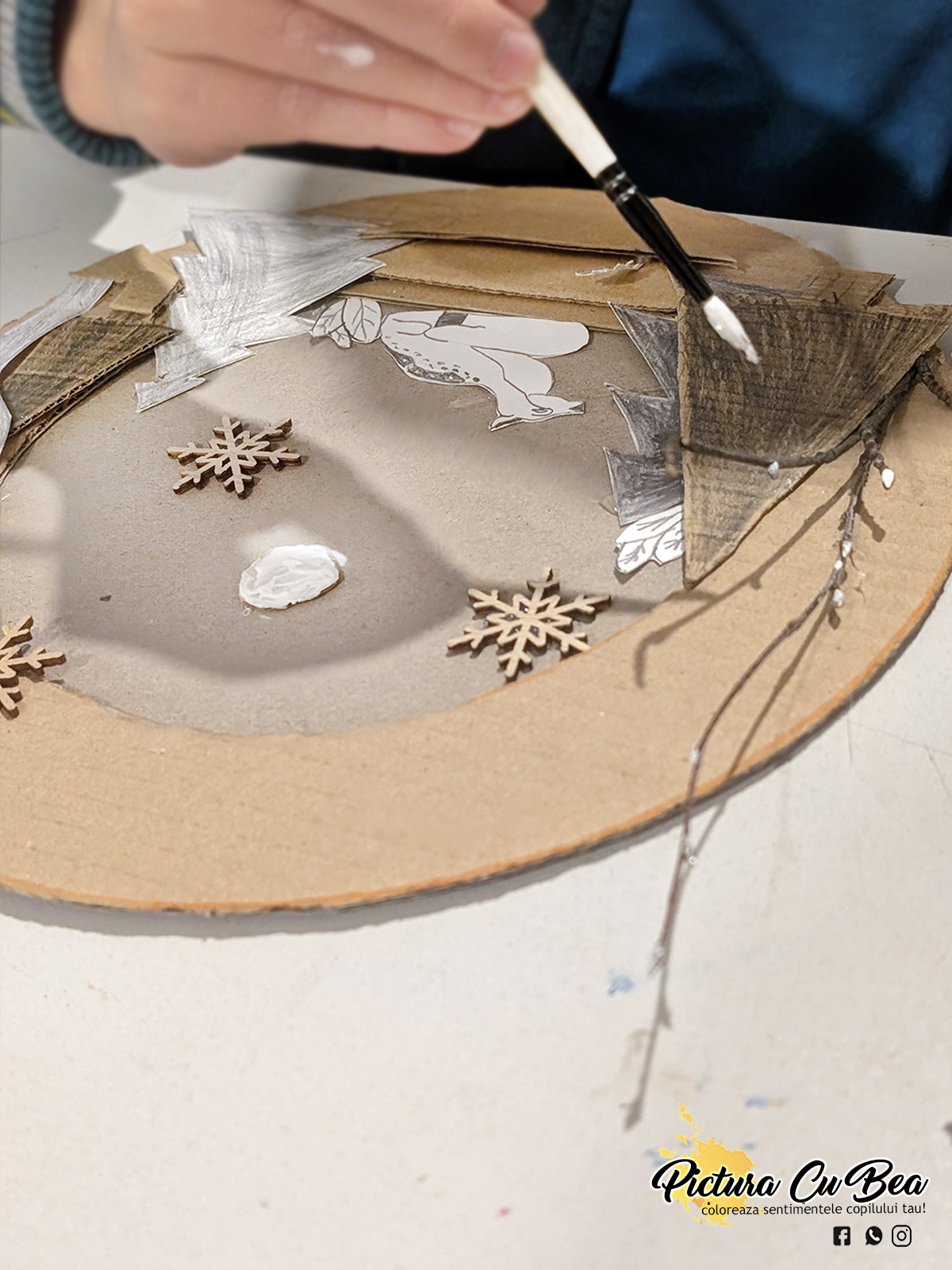 Anul Nou incepe cu sâmbetele de relaxare.Astăzi, fără culori la Picturacubea – doar imaginație, resturi de carton, hârtie și crenguțe naturale!