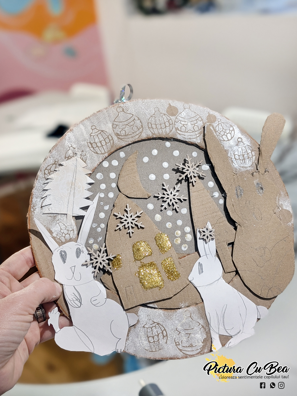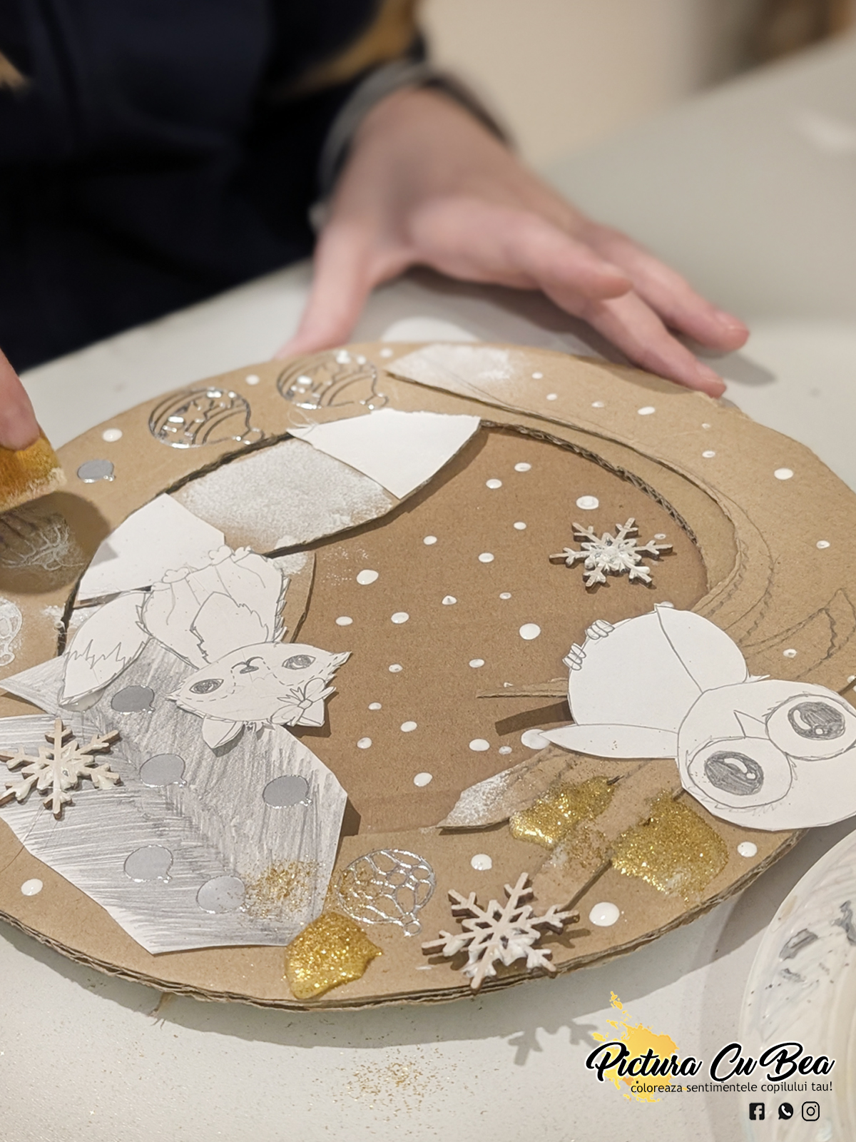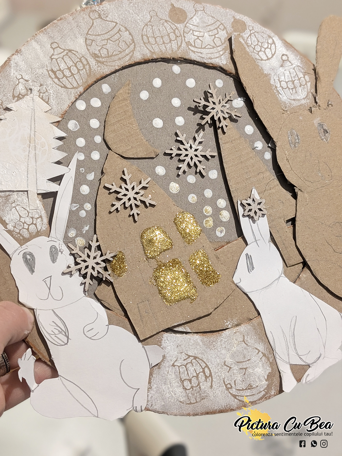 Anul Nou incepe cu sâmbetele de relaxare.Astăzi, fără culori la Picturacubea – doar imaginație, resturi de carton, hârtie și crenguțe naturale!